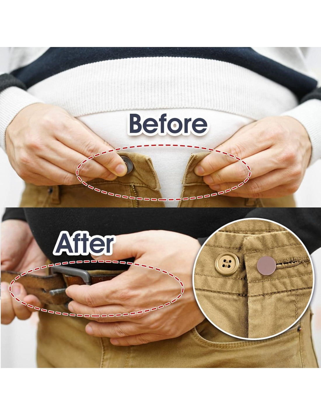 - [Fácil de usar] Nuestro ajustador de cintura de pantalones está diseñado para un uso sin complicaciones, sin necesidad de coser. Simplemente coloque el extensor de ojal en el botón original, y el problema de una cinturilla ajustada se puede resolver fácilmente. Esto hace que el extensor de botón sea una solución fácil de usar para cualquiera que tenga problemas con ropa que no le queda bien. El extensor de botón para pantalones también es fácil de quitar, lo que lo convierte en un accesorio conveniente para tener a mano en cualquier ocasión.