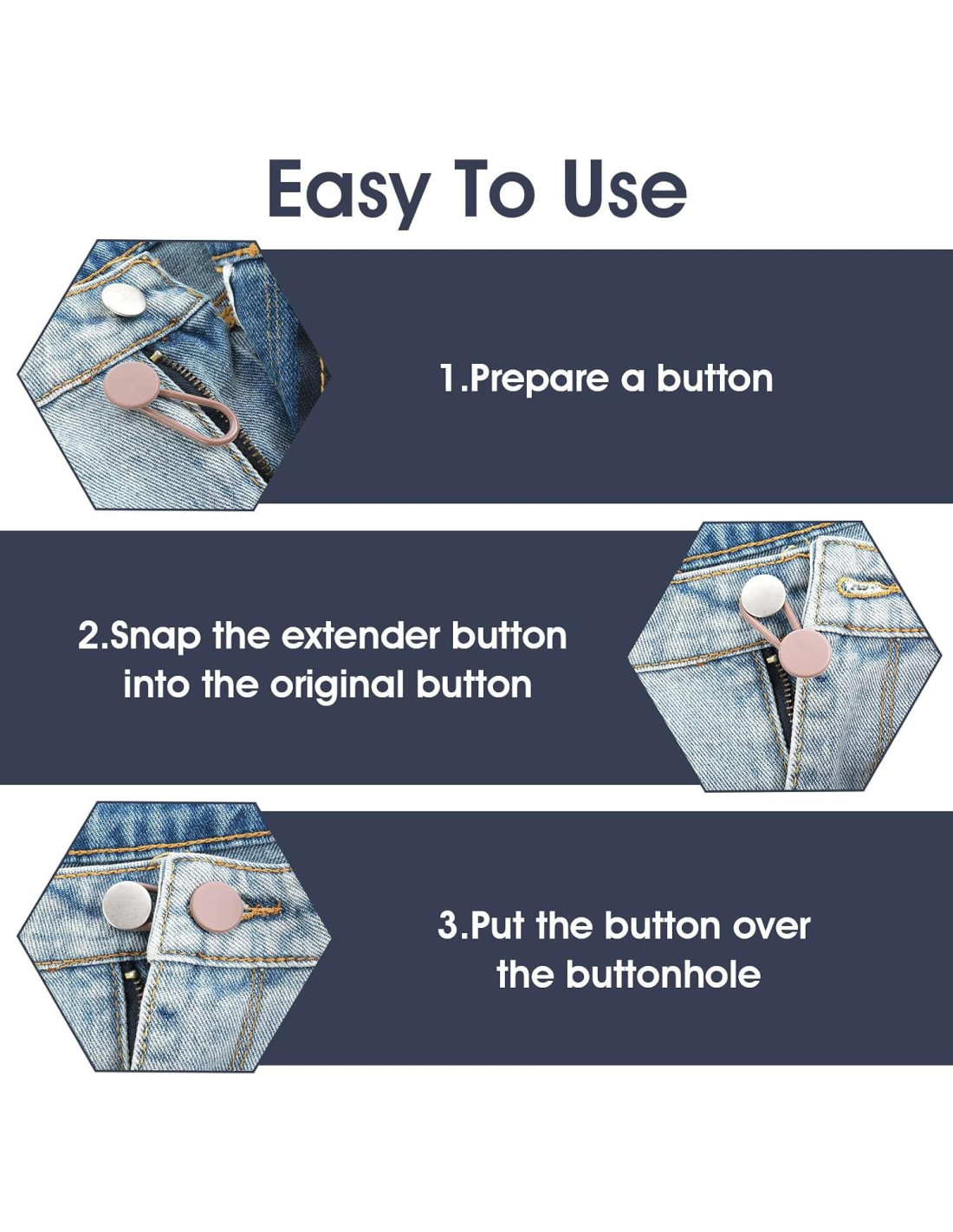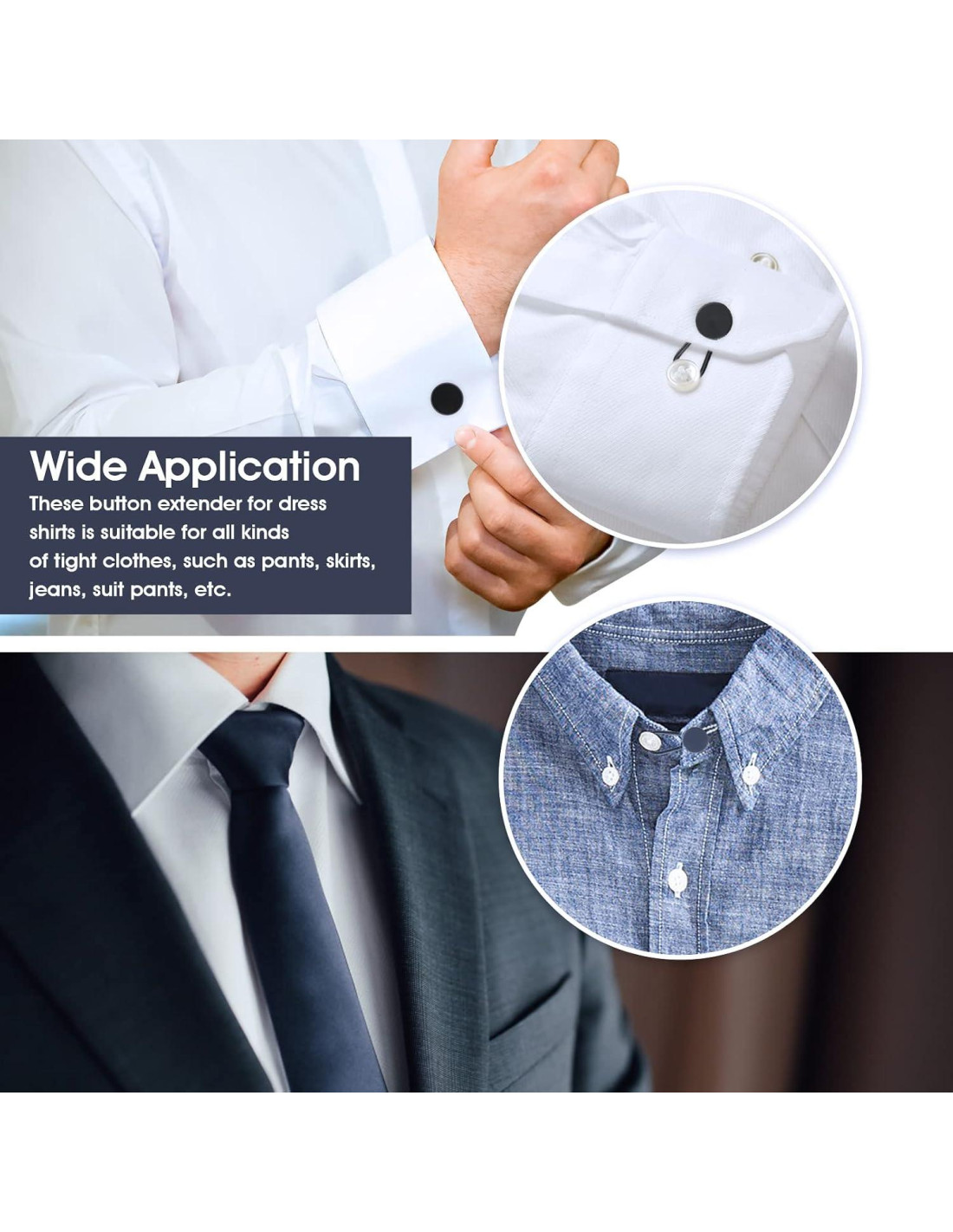 - [Económico] En lugar de tener que comprar ropa nueva debido a una cinturilla o cuello ajustado, este extensor de botón le permite modificar su ropa existente de manera rápida y fácil. Los ahorros de no tener que reemplazar ropa debido a cambios de tamaño pueden acumularse con el tiempo, lo que hace que el extensor de botón sea una inversión práctica para cualquier guardarropa.