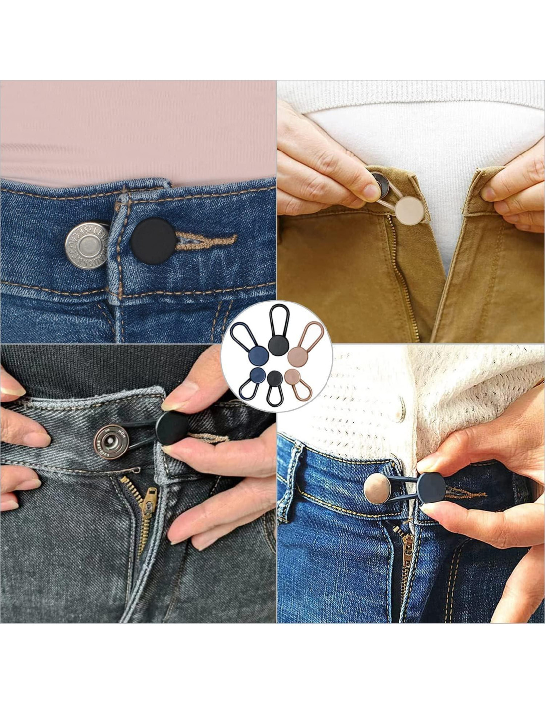 - 2025 Mejorado y Variados Estilos: Actualización de 24 sets a 36 sets de extensores de botón. El número de extensores de botón de pantalones de goma ha sido actualizado de 10 pcs a 20 pcs, aumentando de 3 colores a 5 colores comúnmente usados. También incluye 11 pcs de extensores de silicona en 2 tamaños, 5 pcs de extensores de botón de aleación de zinc en 2 colores.