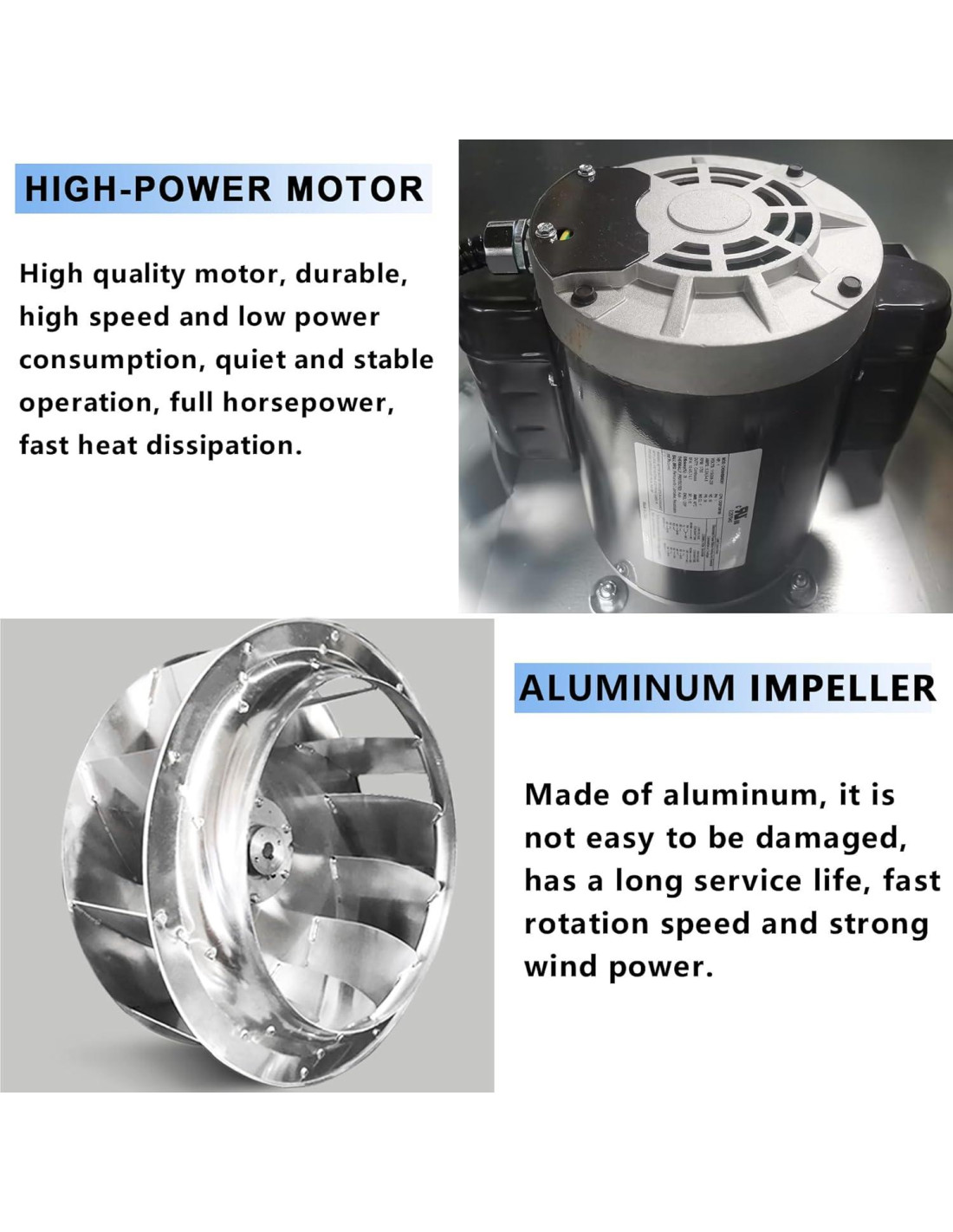 - 800 CFM 1/6 HP motor de 110V de fase única.