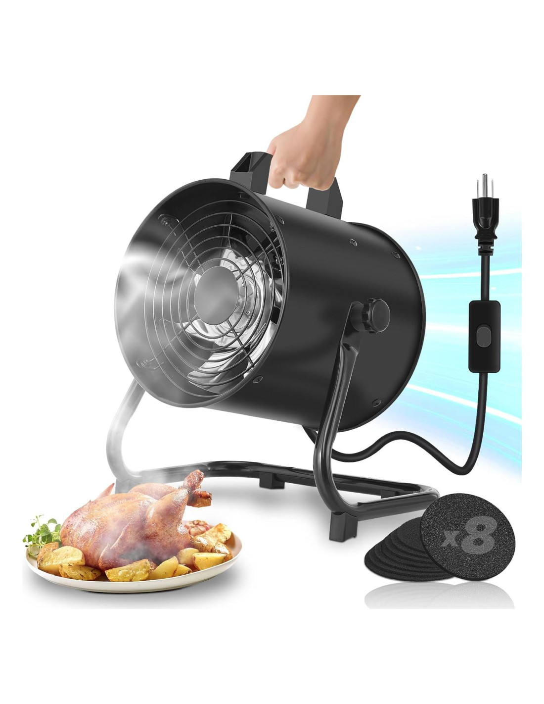- Filtración de Alta Eficiencia - El ventilador extractor para cocina cuenta con 8 filtros de carbón activado reutilizables y lavables, puede absorber eficazmente grasa y olor, y el tiempo de purificación del aire es de hasta 700 horas