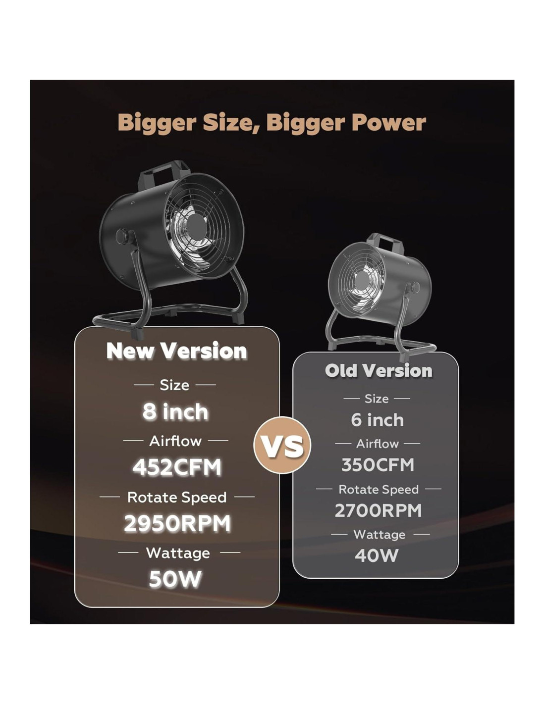 - Succión Potente de 8 PULGADAS: Esta campana extractora al aire libre ofrece un robusto flujo de aire de 452 CFM a 2950 RPM, eliminando los humos de cocina en solo 3 segundos para una experiencia de cocina cómoda. (Equivalente a 768 m/h de capacidad de flujo de aire)