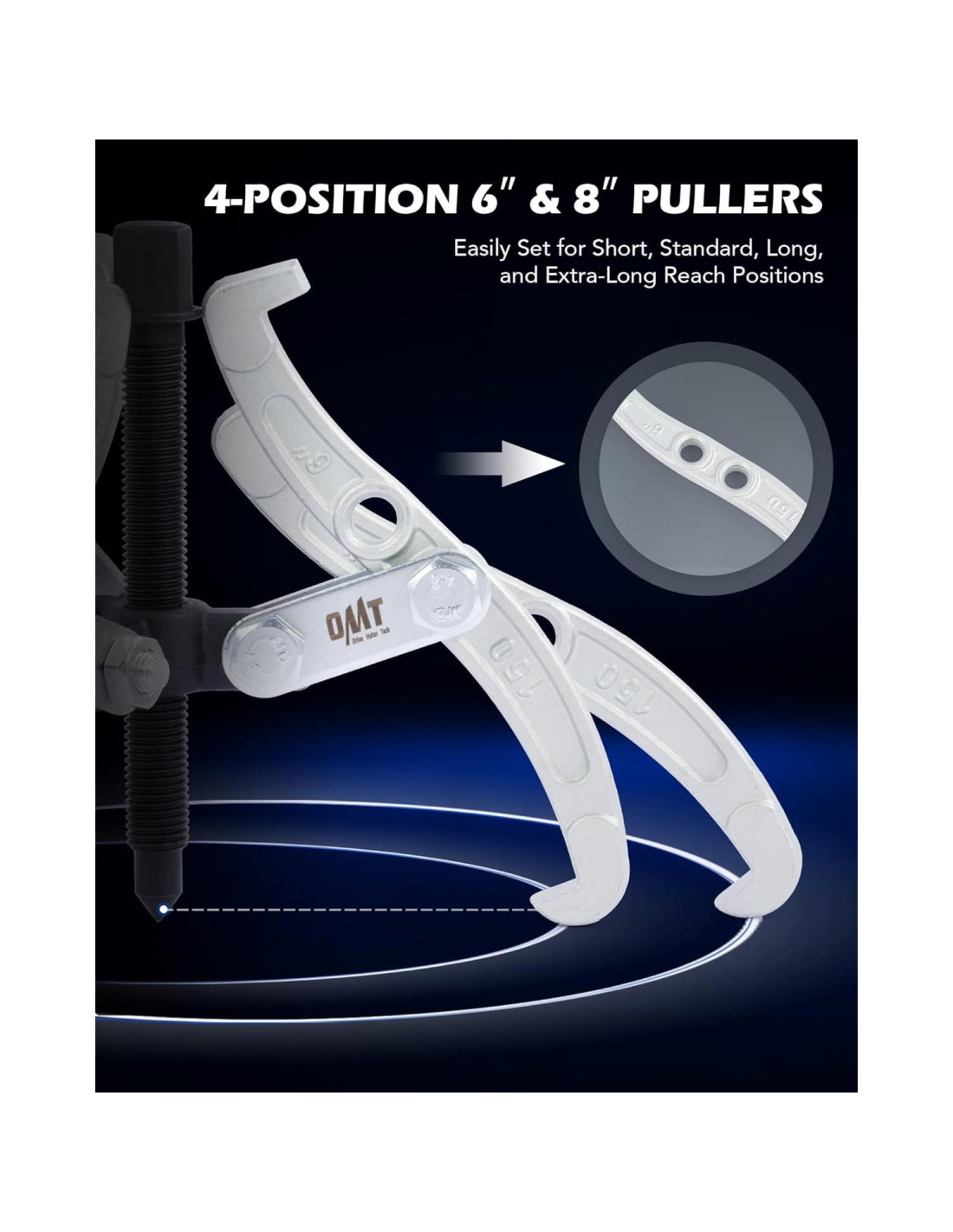 - GARRAS REVERSIBLES: Cada herramienta de extracción de poleas puede ser revertida para extraer piezas desde el interior o el exterior, con los extractores de engranajes de 6" (15,24 cm) y 8" (20,32 cm) que ofrecen 4 configuraciones para un agarre seguro gracias a sus orificios de fijación duales