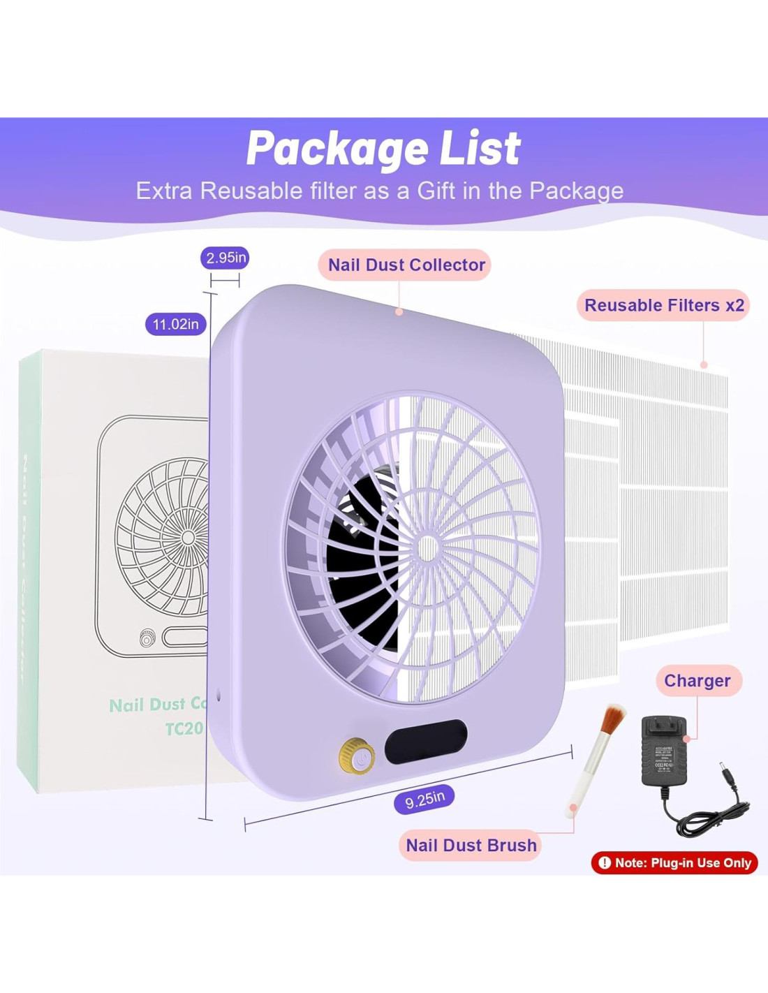- Colector de Polvo de Uñas: El colector de polvo de uñas silencioso viene con un ventilador turbo sin escobillas de alto rendimiento, dos filtros HEPA hechos de fibra ecológica y un cepillo de limpieza. Te permite disfrutar del proceso de arte de uñas sin preocupaciones