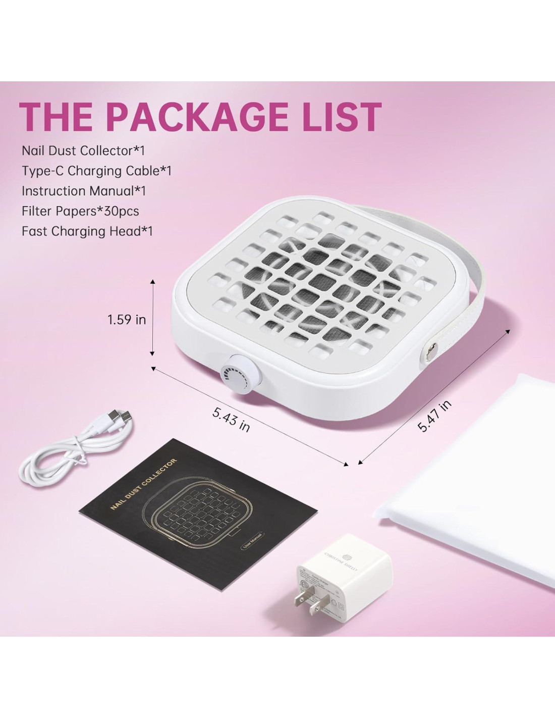 - Succión Ajustable: Con un motor de succión turbo sin escobillas de alta calidad de 6000RPM, este extractor de polvo de uñas es silencioso y te hace sentir más cómodo mientras limas. Ajusta la succión como desees para obtener resultados óptimos. Además, hay una alerta audible cuando la velocidad se establece en 30%, 60% y 90%.