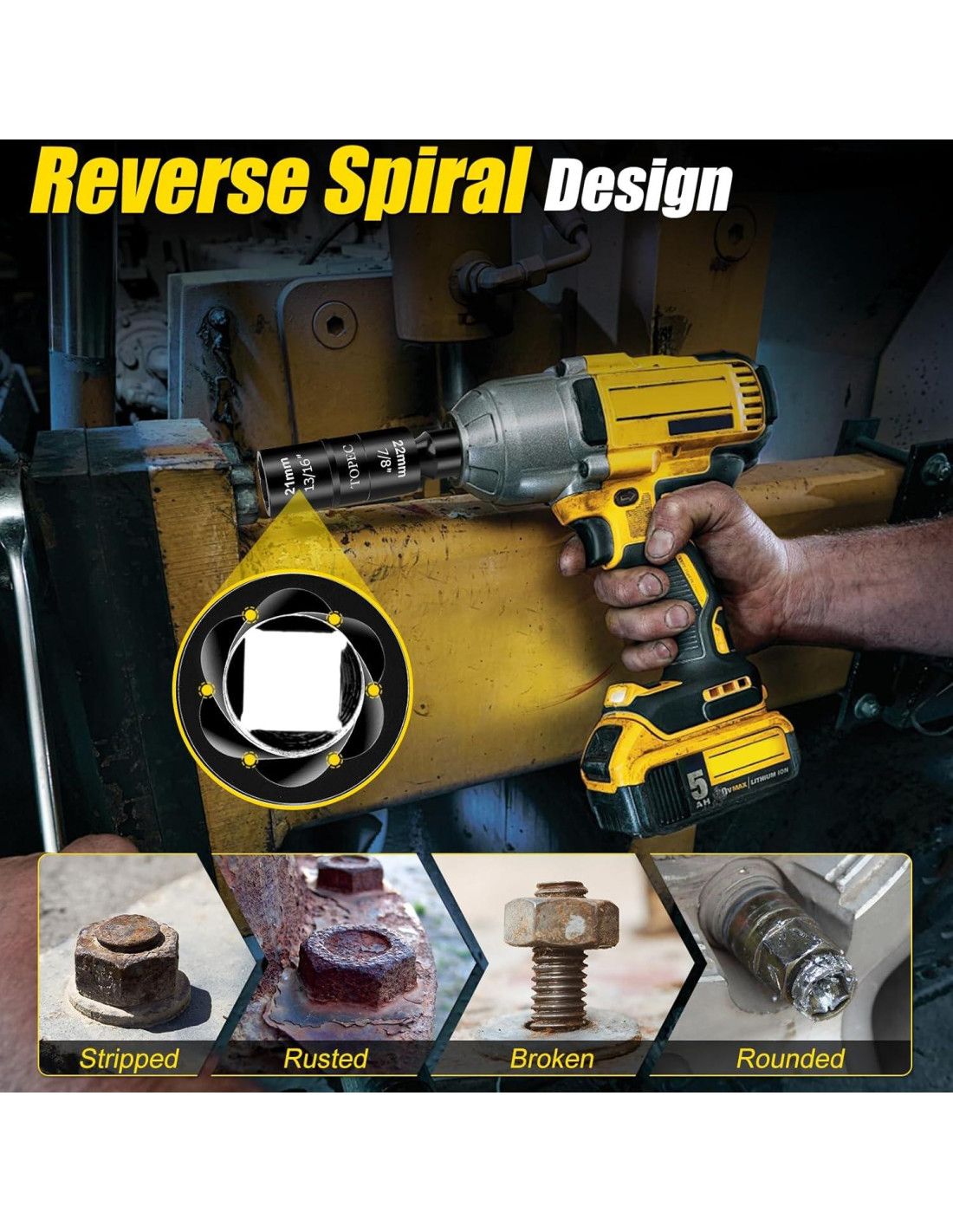 - [AMPLIAMENTE UTILIZADO] Todos los removedores de tuercas de grado industrial premium están estrictamente diseñados. El agarre es firme, no es fácil que se caiga, y proporciona más torque. Elimina fácilmente tornillos, tuercas y tornillos dañados incluso si están pelados, oxidados o congelados. Adecuado para taladros eléctricos, llaves planas o allen, adaptadores de rosca.