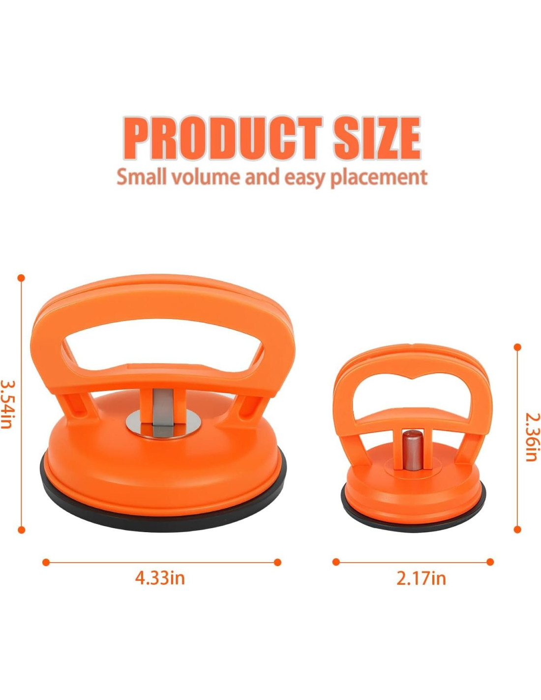 - Suction Portátil y Potente: Equipado con dos ventosas grandes (11 cm) y dos ventosas pequeñas (5.5 cm), este extractor de abolladuras puede lograr una potencia de succión horizontal máxima de 59 kg y una potencia de succión vertical de 36 kg, lo que lo hace perfecto para abolladuras pequeñas y grandes.