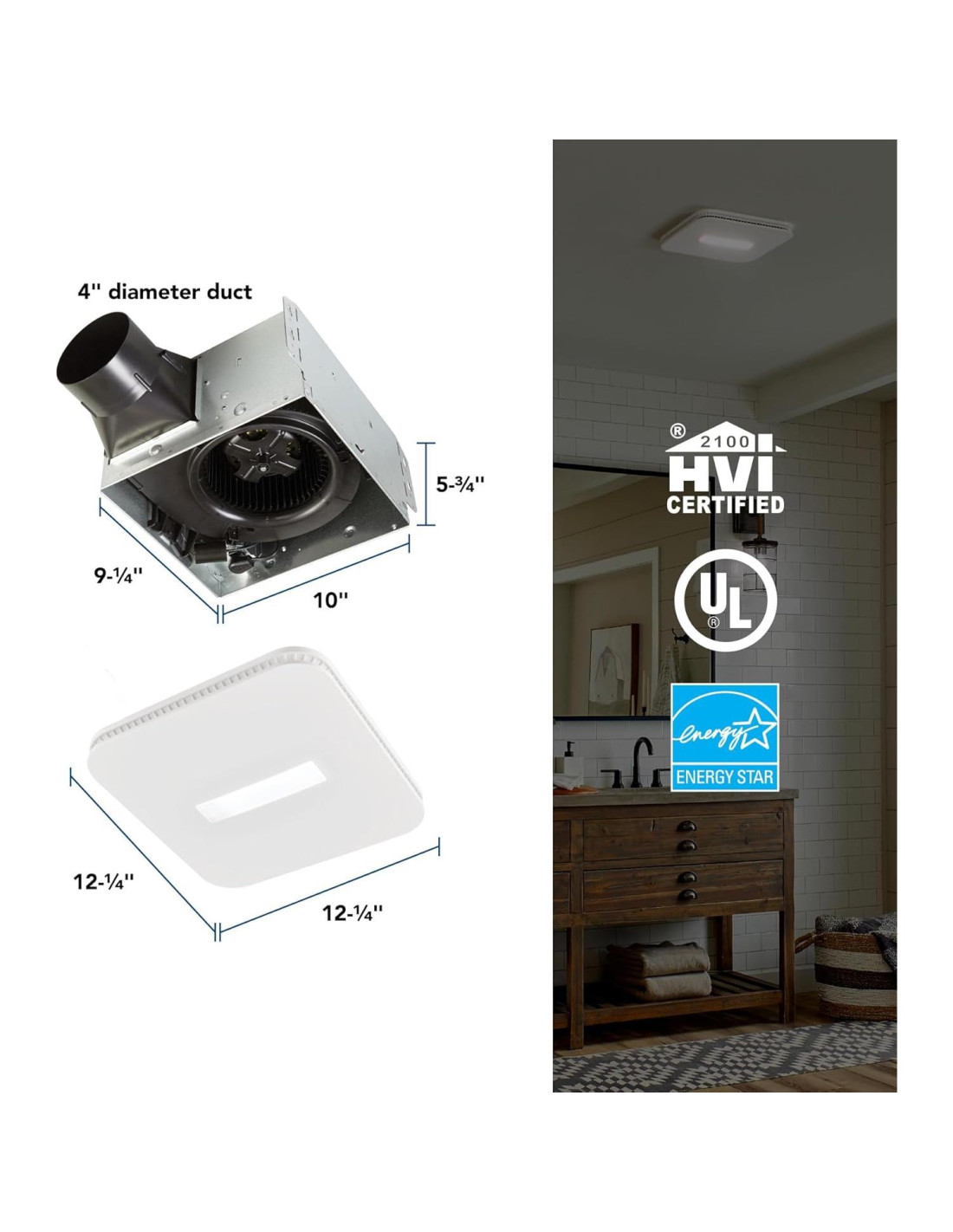 Tamaño: 80 CFM "El ventilador de extracción de baño Broan-NuTone con su rejilla CleanCover y luz LED CCT seleccionable ofrece una temperatura de color ajustable que te permite controlar el ambiente de tu espacio. Desde un cálido LED de 3000K hasta un nítido LED de 5000K, elige entre 4 configuraciones de luz seleccionables con el giro de un interruptor. Este ventilador de una sola velocidad de alta calidad, certificado por ENERGY STAR, elimina y reduce en tu baño a 80 CFM hasta 7 m con una clasificación de sonido super silenciosa de 0.7 Sone. Además, puedes despedirte de las rejillas estándar antiestéticas que atrapan polvo y escombros y pueden ser un problema para limpiar. Con CleanCover, la cubierta de tu ventilador se mantiene más limpia por más tiempo con menos ranuras de ventilación que limpiar y un diseño que coordina con cualquier decoración. Usando la tecnología TrueSeal Damper, el ventilador de alto rendimiento reduce la fuga de aire en hasta un 50%, el sellado más ajustado contra corrientes de aire. Diseñado para ser instalado en retrofits, remodelaciones y reemplazos, este ventilador cuenta con una instalación sin complicaciones desde el lado de la habitación, perfecto para espacios sin acceso al ático. El kit de brida SnapFit, conector EzDuct y orejas de montaje FoldAway lo hacen lo suficientemente flexible para casi cualquier desafío de instalación, especialmente para habitaciones en el primer piso o sótano de tu hogar. Este artículo está listado por UL para su uso sobre bañeras o duchas cuando está conectado a un circuito de rama protegido por GFCI (no incluido). El ventilador también está listado por UL para su uso en techos aislados (tipo I.C.) y certificado por HVI-2100 por su seguridad. Las dimensiones de la carcasa de perfil bajo miden 31.1 cm x 31.1 cm x 14.6 cm, y este artículo cuenta con una garantía limitada de tres años para tu conveniencia. Broan-NuTone lidera la industria con productos de ventilación residencial innovadores, soluciones de clima personalizadas, comunicaciones y automatización del hogar junto con un servicio al cliente galardonado. La inspiradora herencia de Broan-NuTone proporciona la base para sus tres marcas globales: Broan, NuTone y BEST."