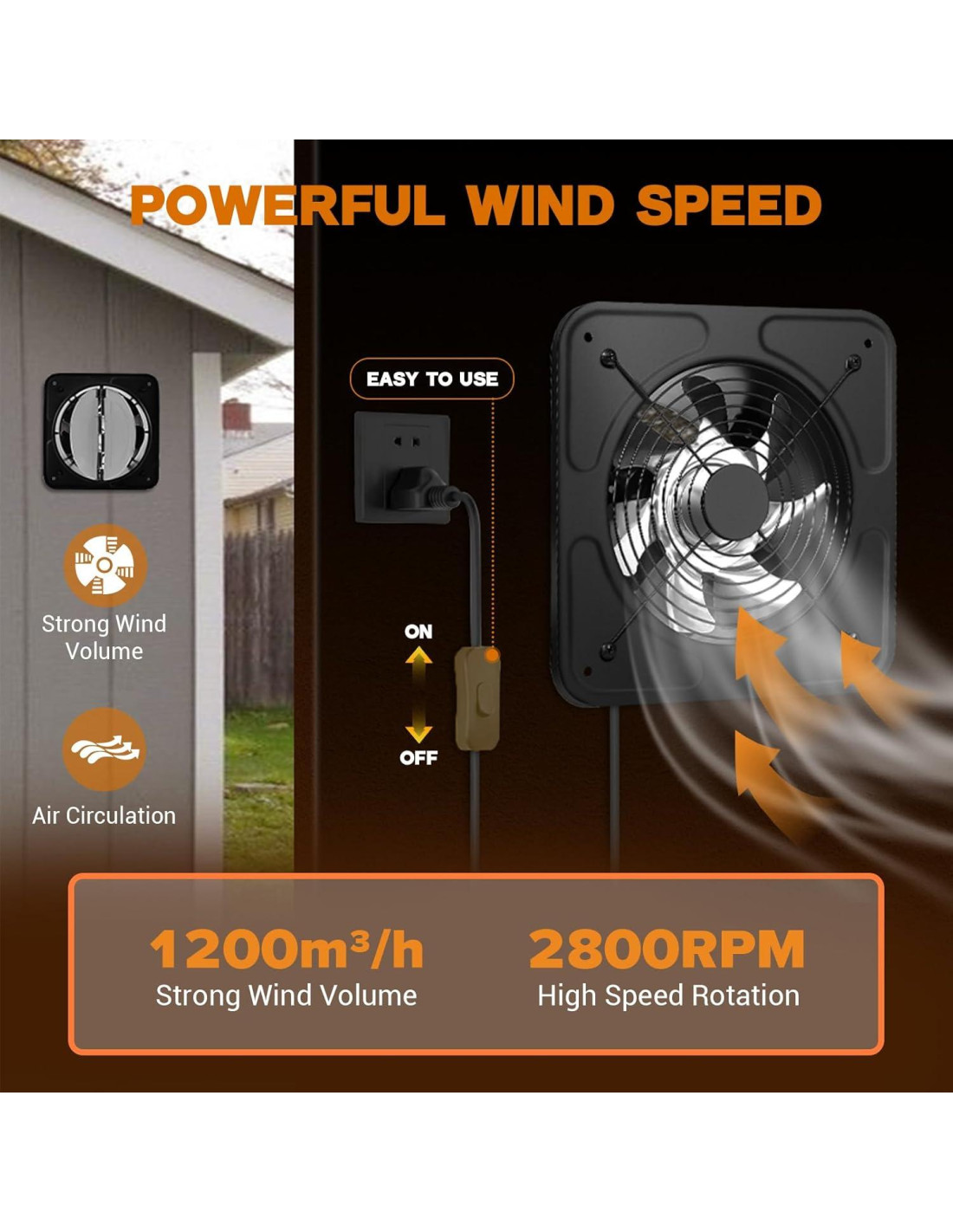 - Operación de Ahorro de Energía - Los ventiladores de ventana de 8 pulgadas con extracción e intake tienen una velocidad de rotación de hasta 2800RPM, con solo 50W de consumo, y puede obtener un flujo de aire máximo de 700 CFM (1200 m/h), un rendimiento tan potente