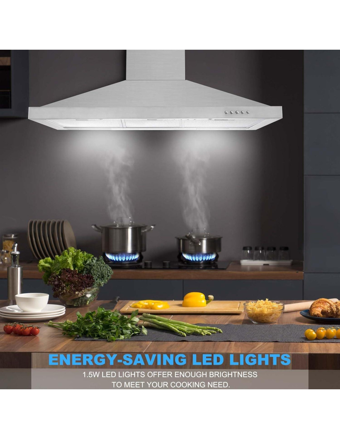 - 450CFM Flujo de Aire Eficiente 30 cm campana extractora con 450 CFM de potente succión y ventilador de escape de 3 velocidades, elimina eficazmente olores, humo y grasa. Silenciosa 55 dB de campanas extractoras le proporcionan un ambiente de cocina cómodo