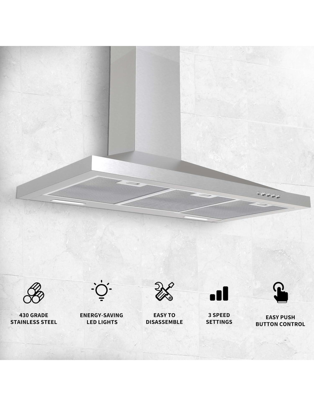 - Filtros de Aluminio Reutilizables de 5 Capas Los filtros de aluminio de 5 capas de la campana extractora de estufa atrapan eficazmente la grasa y los olores de cocina, proporcionando un ambiente limpio y cómodo en su cocina. Los filtros de malla desmontables también son fáciles de limpiar e instalar, mantienen la campana extractora efectiva y duradera