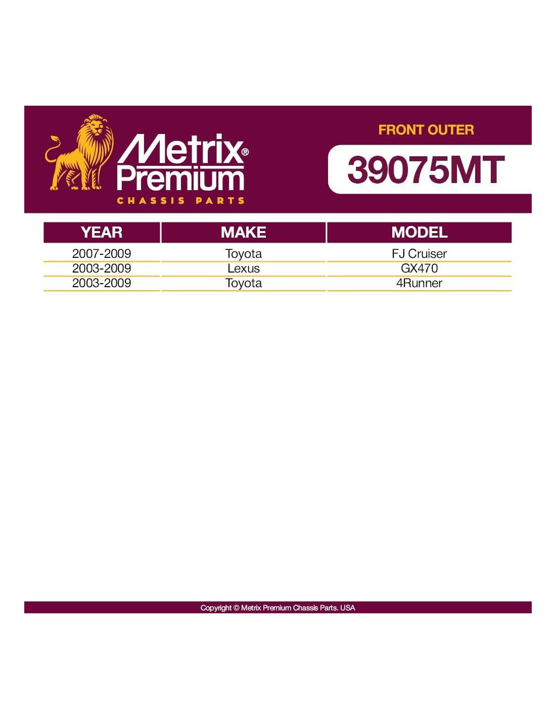 - CONFIABLE Y RESPALDADO POR GARANTÍA: Todas las piezas de chasis premium Metrix vienen con una garantía limitada de 3 años / 36,000 millas desde la fecha de instalación.