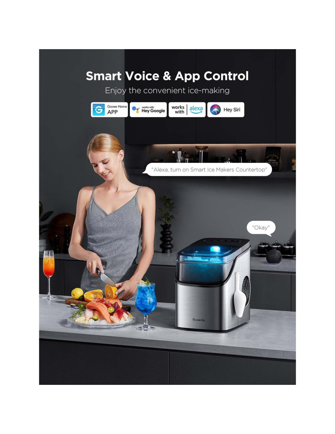 - Wi-Fi Integrado y Control por Voz: Empareja tu máquina de hielo con la aplicación. Usa comandos de voz a través de Alexa y Google Assistant para una variedad de funciones inteligentes. Monitorea el estado del dispositivo y programa hielo fresco en cualquier momento y lugar. (Solo soporta Wi-Fi de 2.4GHz).