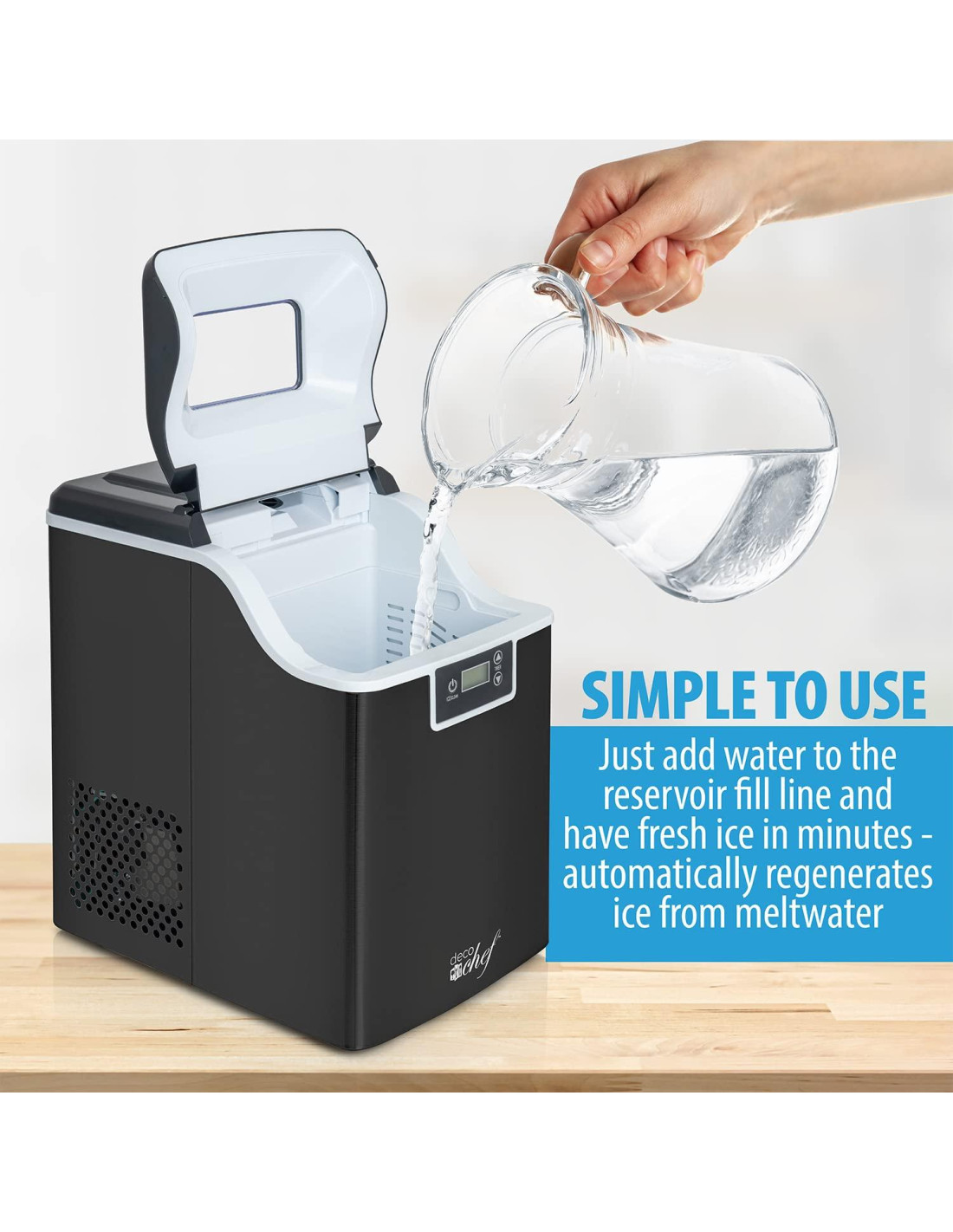 - PARA EL ENTUSIASTA DE LAS BEBIDAS Y COCTELES - Elegante, eficiente y fácil de usar - la Máquina de Hielo de Nugget Deco Chef 44LB combina proporciones de encimera y un alto volumen de producción de hielo en un paquete compacto. Controles simples y métodos de llenado de agua se unen para ofrecer hielo de calidad de restaurante cuando lo desees.