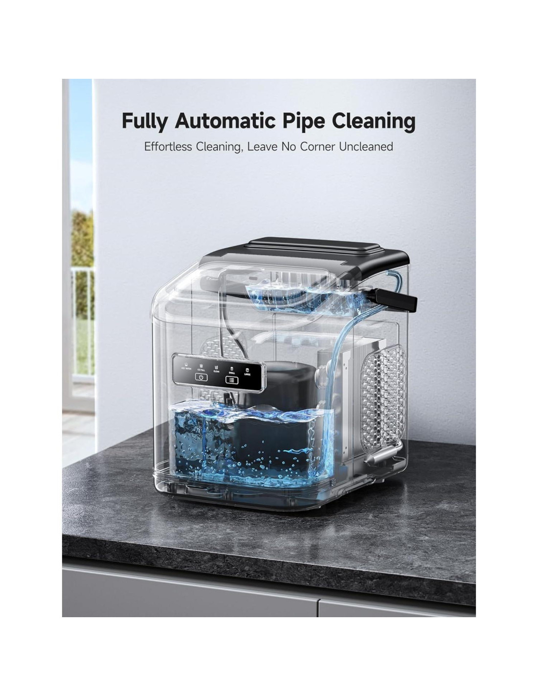 - Autolimpieza Totalmente Automática: Con una función de limpieza totalmente automática, mantener tu máquina de hielo es muy fácil; disfruta de un funcionamiento óptimo y sin fallos sin la molestia de la limpieza manual (Nota: Por favor, lee cuidadosamente el manual del usuario antes de usar el producto).