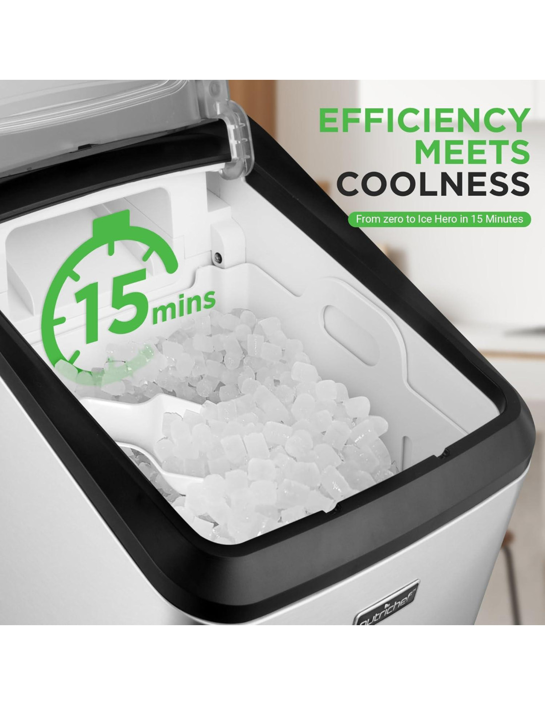- COMPACTA INCREÍBLEMENTE RÁPIDA: A pesar de tener una construcción tan compacta, esta Máquina de Hielo puede hacer hasta 26 lbs. (11.79 kg) de cubos de hielo granular en 18 minutos. Con esta máquina de hielo, puedes asegurarte de nunca quedarte corto de hielo nuevamente para las bebidas en tu hogar
