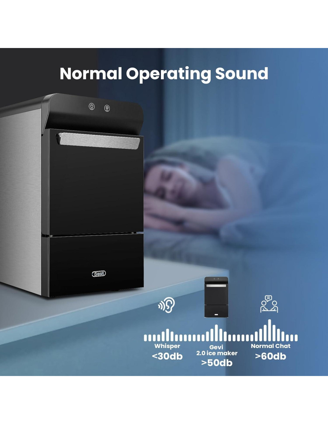 - Este fabricador de hielo en pellets cuenta con un compresor de alto rendimiento, ventilador de escape silencioso y componentes de precisión que operan a solo 50dB, más silencioso que una conversación normal. Disfrute de hielo fresco sin ruido disruptivo, perfecto para hogares, oficinas o uso nocturno.