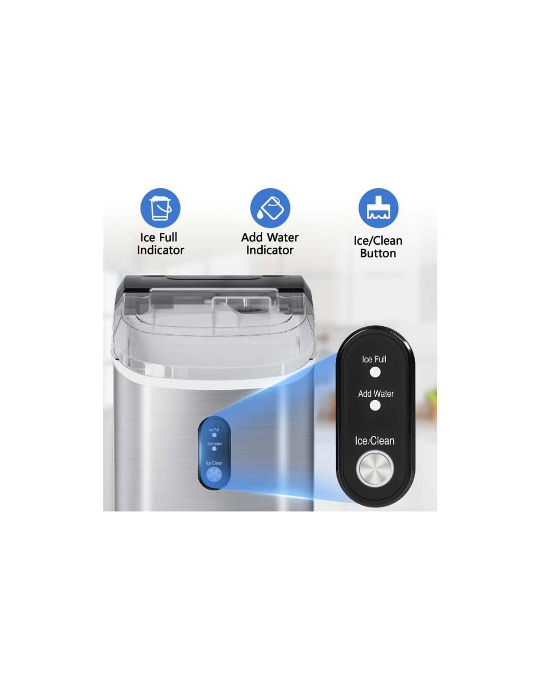 - DISEÑO COMPACTO Y PORTÁTIL: Nuestra máquina de hielo nugget tiene un mango resistente, un tamaño compacto (LAL) de 9.45x11.61x12.99 pulgadas (24,0x29,5x32,9 cm) y un peso bastante ligero. Estas características hacen que nuestra máquina de hielo de perlas sea fácil de transportar y excelente para cualquier ocasión como Hogar/Oficina/Camping/Fiesta/Bar/RV. Otro diseño amigable es el soporte para la pala de hielo en la parte trasera que permite un fácil almacenamiento cuando no está en uso, la gran ventana de visualización permite monitorear directamente el proceso de fabricación de hielo. Compra ahora y disfruta de bebidas refrescantes todo el verano.