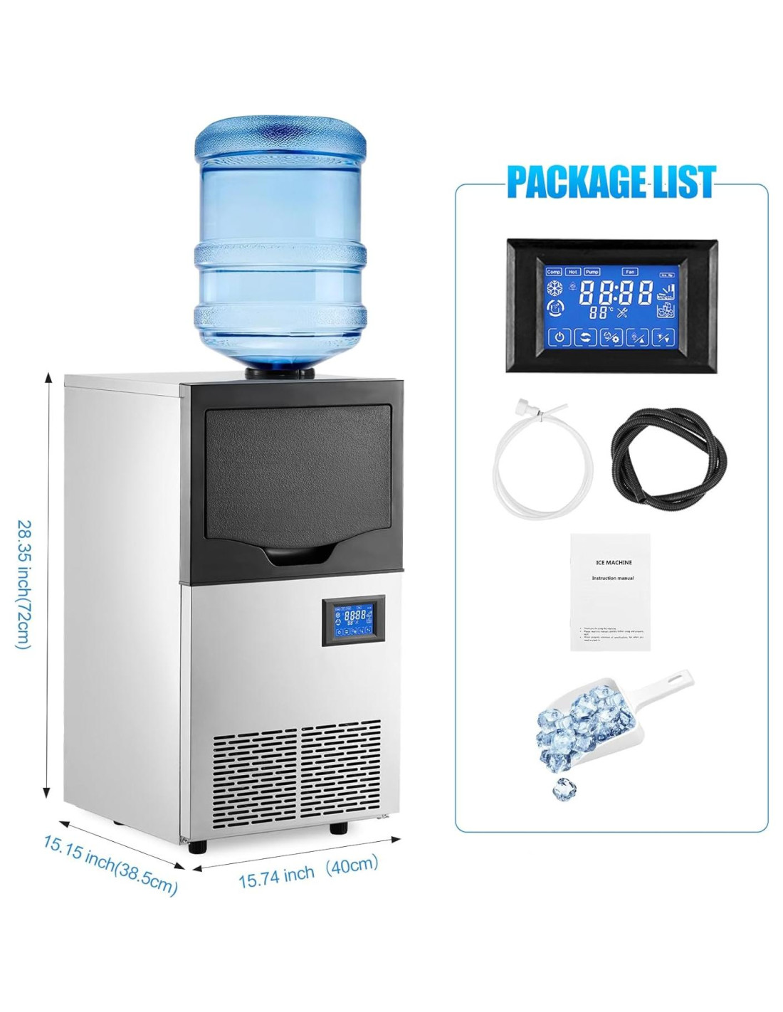 - Accesorios Convenientes: Equipado con un filtro de agua premium para cubos de hielo cristalinos, esta máquina de hielo viene con accesorios esenciales como cucharas para hielo, una manguera de suministro de agua, un conector de suministro de agua y una manguera de drenaje, ofreciendo una solución completa para su conveniencia.