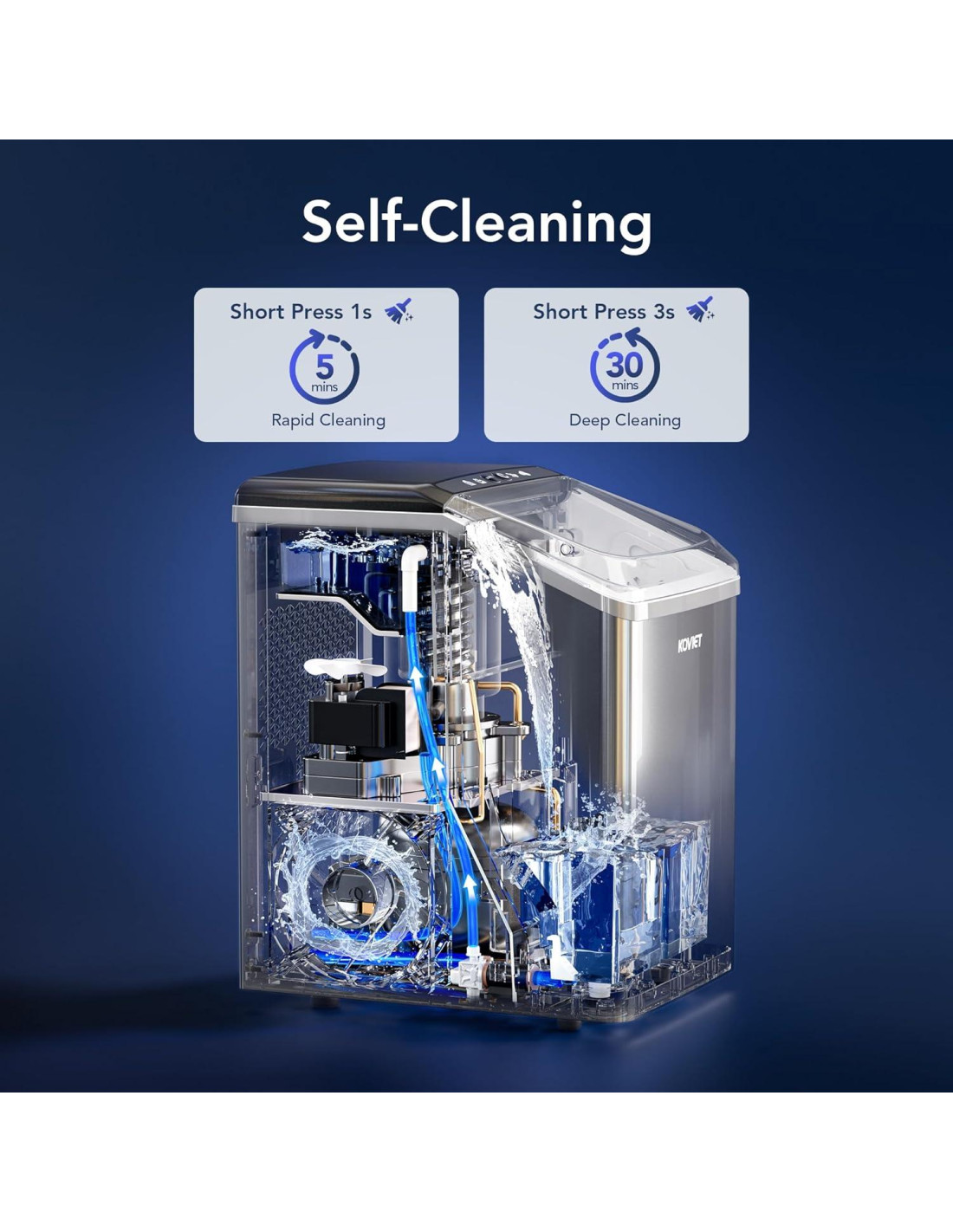 - Autolimpieza Fácil: Entra automáticamente en modo de limpieza durante 5 minutos antes de cada operación, autolimpieza con un solo toque, limpieza rápida de 5 minutos, limpieza profunda de 30 minutos, manteniendo el hielo con un sabor fresco
