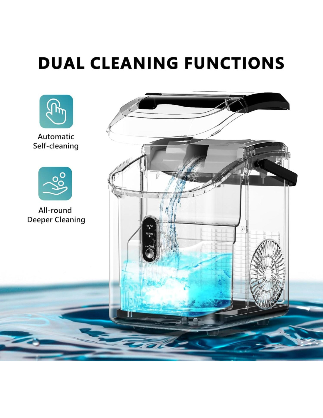 - DISEÑO COMPACTO Y PORTÁTIL: Nuestro fabricante de hielo tipo nugget tiene un mango resistente, un tamaño compacto (LAL) de 24.0x29.5x33.0 cm y un peso bastante ligero. Estas características hacen que nuestro fabricante de hielo en piedra sea fácil de transportar y excelente para cualquier ocasión como Hogar/Oficina/Camping/Fiesta/Bar/RV. Otro diseño amigable es el soporte para la cuchara de hielo en la parte trasera que permite un fácil almacenamiento cuando no está en uso, la gran ventana de visualización permite monitorear directamente el proceso de fabricación de hielo. Compra ahora y disfruta de bebidas refrescantes todo el verano