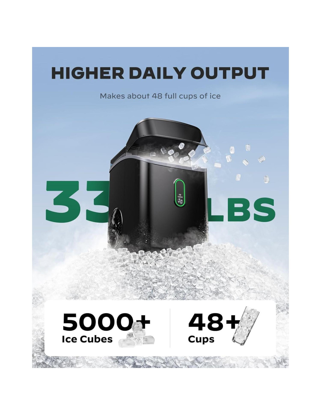 - Efectiva Producción de Hielo: La producción diaria de 33 lbs (15 kg) es aproximadamente 48 tazas (8.5 fl oz) llenas de hielo nugget. Satisface fácilmente las necesidades de familias grandes y fiestas. Prepara un gran té helado, café o cócteles. Incluso enfría cervezas y mantiene la comida fresca.