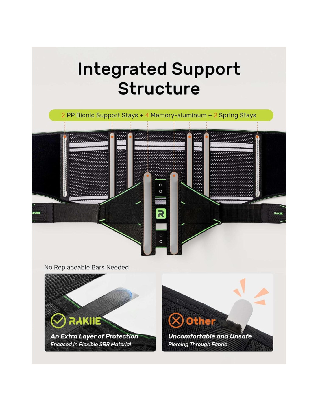 - Alivio Inmediato para el Dolor de Espalda con Soporte Profundo: La faja de soporte para la espalda Rakiie para mujeres ofrece soporte lumbar de 8 puntos con 4 varillas de aleación de aluminio con memoria, proporcionando 4 veces la fuerza de las fajas tradicionales. Combinada con 2 resortes elásticos y 2 varillas de PP, la faja para la parte baja de la espalda para hombres mejora la alineación de la columna, reduce la presión y alivia la incomodidad de estar sentado, de pie o condiciones como la ciática. Comodidad durante todo el día y alivio del dolor lumbar, manteniendo tu torso en una postura segura y de soporte.