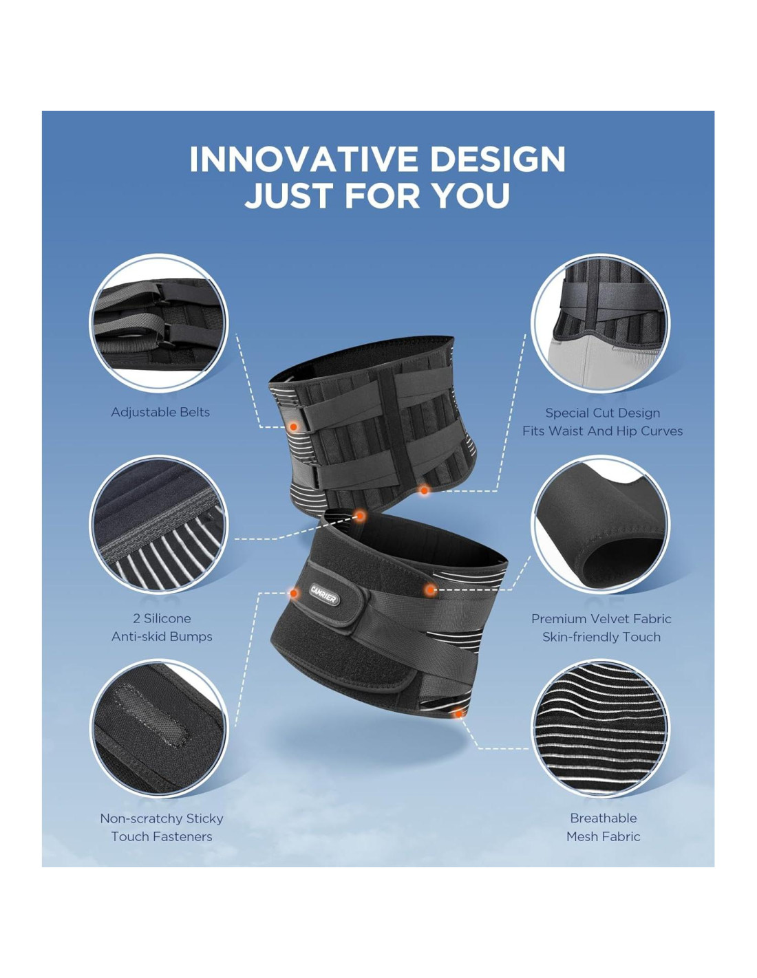 - REEMPLAZO SIN COMPLICACIONES - ¡NO NECESITAS DEVOLVER! Nos enorgullecemos enormemente de nuestro trabajo y servicio experto en Amazon, y prometemos tratarte como familia. El cinturón de soporte de espalda CAMRIER para mujeres y hombres proporciona una solución cómoda y efectiva para aliviar el dolor de espalda baja, mejorar la escoliosis, mantener una postura correcta, permitiéndote tener un estilo de vida más saludable. Si no estás satisfecho con tu compra, te reembolsaremos. ¡Sin preguntas! ¡Son nuestra mayor fuente de orgullo!