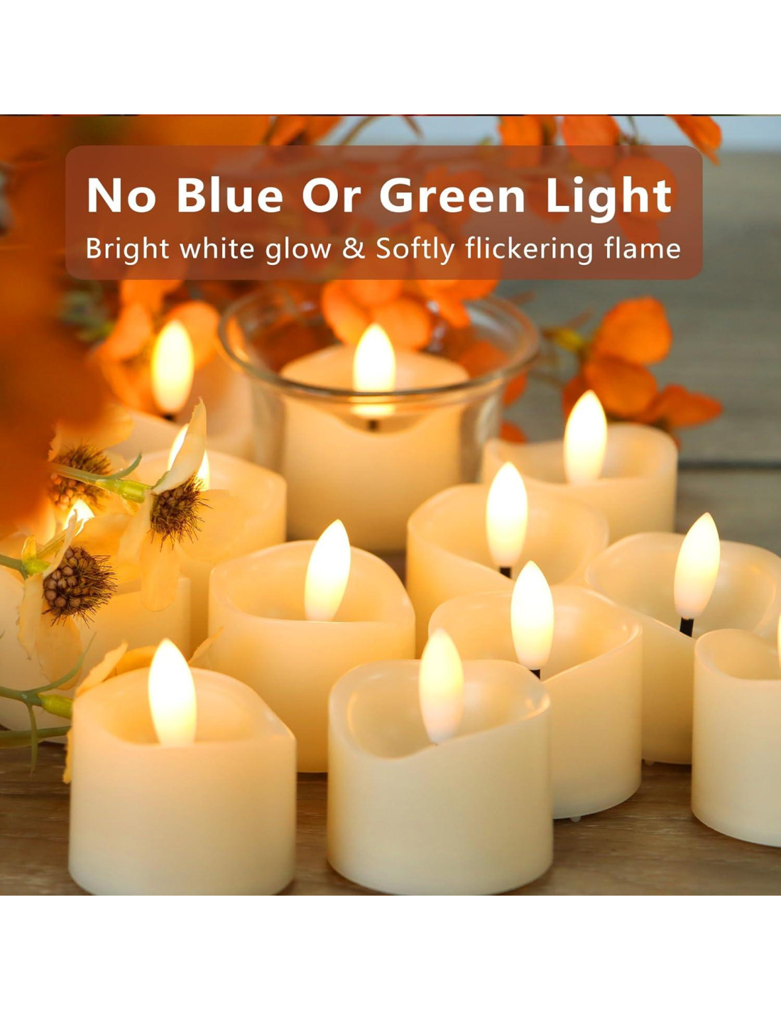 - [Ambiente Elegante y Romántico] Las luces LED operadas por batería con luz blanca cálida suave crean un ambiente romántico y relajante. Las velas votivas / de té están diseñadas para parpadear de manera realista para que pueda sentir la atmósfera de una llama de vela real.