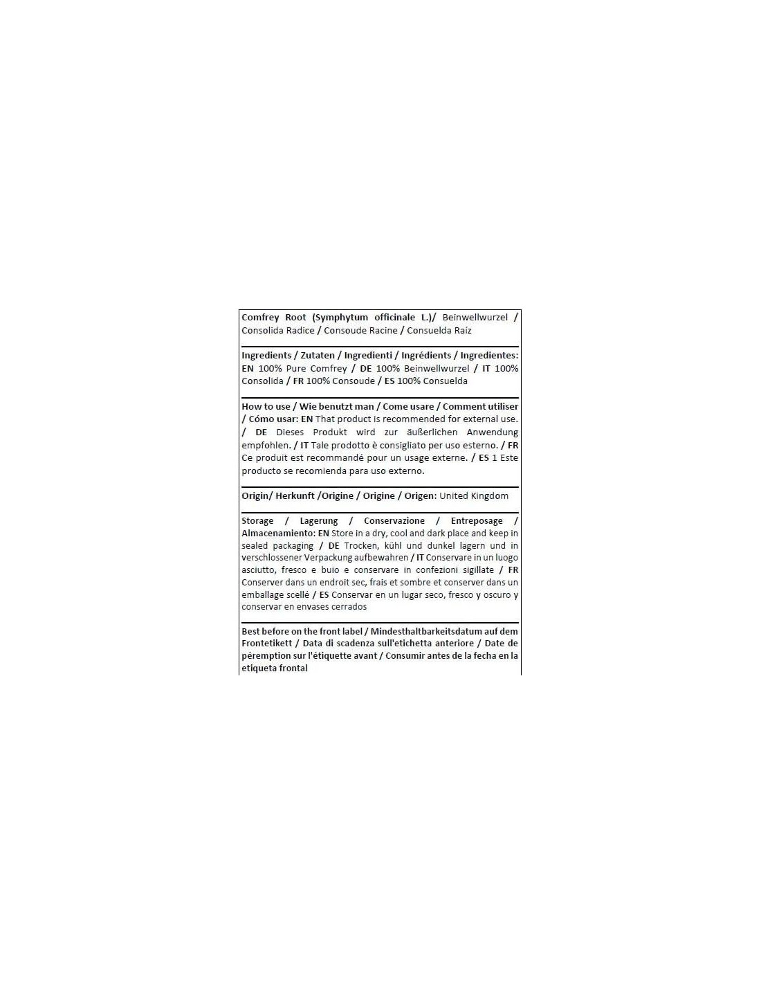 - Sin Aditivos: No contiene aditivos ni conservantes, solo la esencia natural de la Raíz de Comfrey Orgánica.
