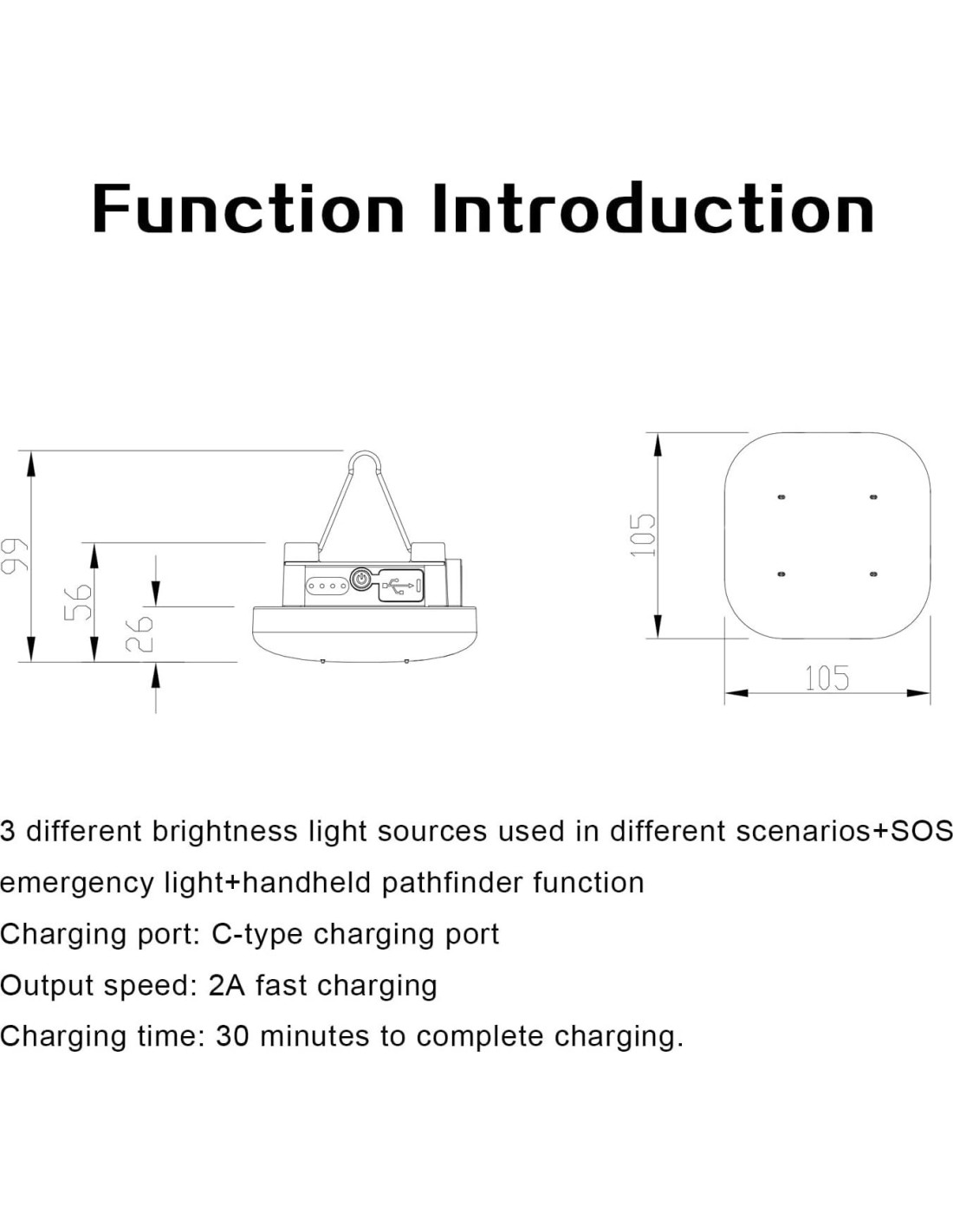 - Esta luz de camping está equipada con 12W de potencia y el mismo brillo que una lámpara incandescente de 60W, con 30 LEDs de alta luminosidad que pueden iluminar fácilmente toda la tienda o habitación en noches oscuras. 5 modos de iluminación y brillo ajustable infinitamente la hacen adecuada para más escenarios, como camping, correr, pescar, senderismo, leer, reparar automóviles, etc. Al encontrarte con una emergencia o mal funcionamiento del automóvil, mantén presionado el botón durante 5 segundos para cambiar al modo de parpadeo de emergencia, lo que puede hacer que tengas más probabilidades de recibir ayuda de otros en caso de peligro.