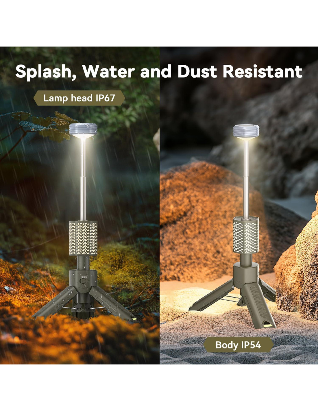 - Portátil y Fácil de Usar: Con un diseño de trípode retráctil, plegable y magnético, nuestra lámpara de camping es increíblemente fácil de llevar y almacenar, ideal para espacios limitados en mochilas de camping. El poste de lámpara extensible puede iluminar áreas de difícil acceso como techos de tiendas o rincones estrechos. El trípode puede mantenerse estable en suelo plano, hierba o arena, y el imán incorporado permite que se adhiera de forma segura a coches, barcos o motocicletas