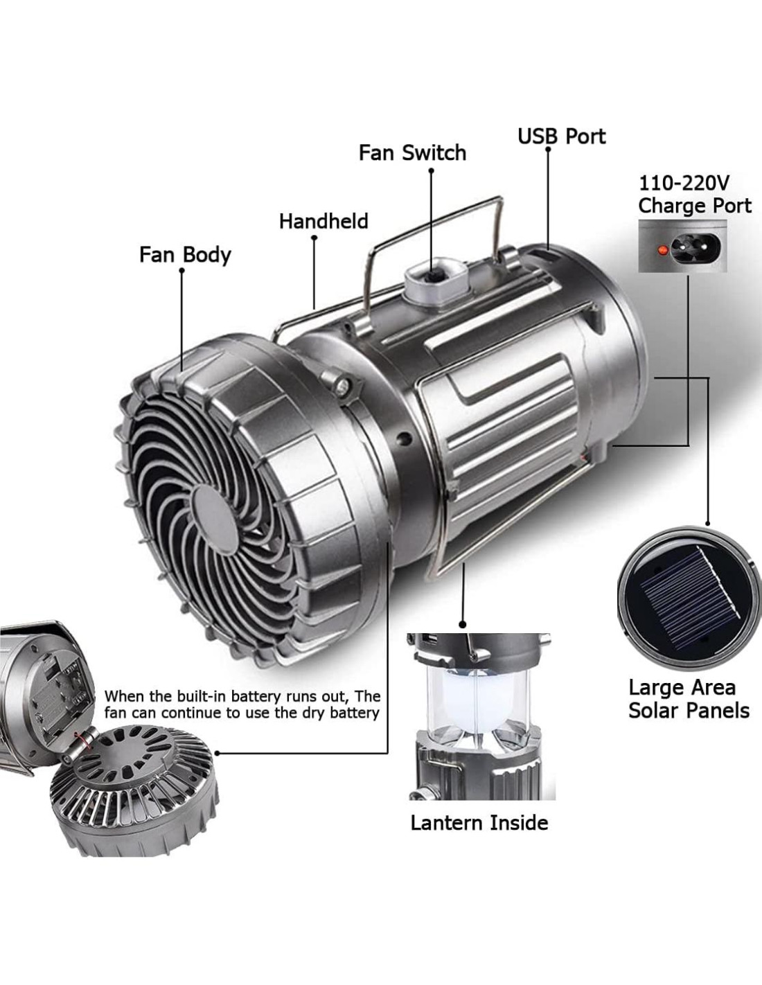 - [Linterna Solar para Camping con Ventilador] Experimenta el compañero de camping definitivo con nuestro diseño de linterna 2 en 1. Ajusta el brillo según lo alto que levantes la linterna, proporcionando mucha luz a plena apertura, iluminando fácilmente toda una habitación.