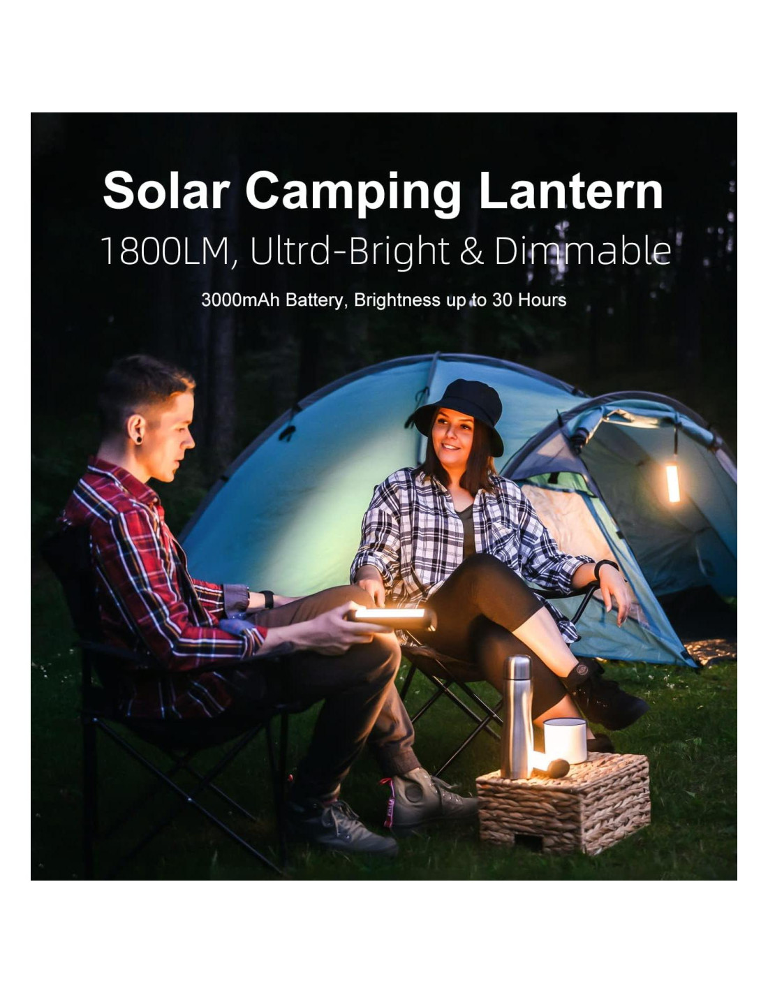 - [Funciona con Batería y Solar] Batería de polímero de 3000mAh incorporada, el tiempo de iluminación de hasta 30 horas, no es necesario reemplazar la batería, se puede cargar fácilmente con el enchufe en cualquier situación, y la linterna de camping también se puede cargar a través de energía solar. La linterna recargable tiene un puerto de salida USB incorporado, que puede cargar tu teléfono en una emergencia, sin necesidad de preocuparte por que tu teléfono se quede sin energía durante el camping.