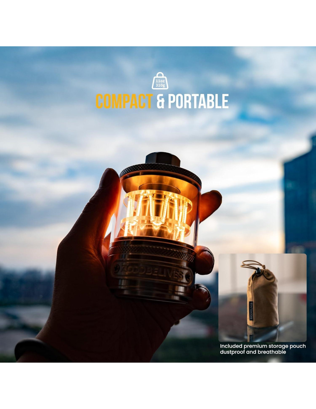 - NO SOLO UNA LUZ, SINO UNA DECLARACIÓN - Esta linterna es una declaración de gusto en aluminio hecho a mano. Donde otros toleran el resplandor plástico, tú empuñas arte funcional-su brillo de 2100K entrega verdadera calidez de fogata bajo las estrellas. La artesanía vintage se encuentra con el rendimiento moderno en el centro silencioso de esta reunión