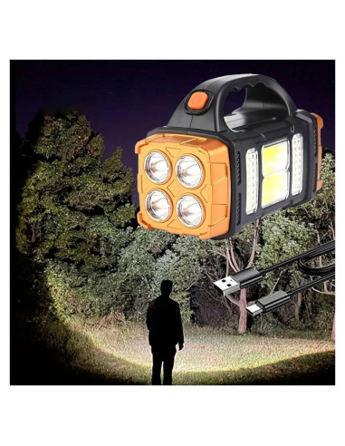 Linterna Solar de Alto Lúmenes - Luz de Trabajo LED con Recarga USB-C, Impermeable, Linterna y Farol Multifuncional para Camping, Emergencias y Actividades al Aire Libre