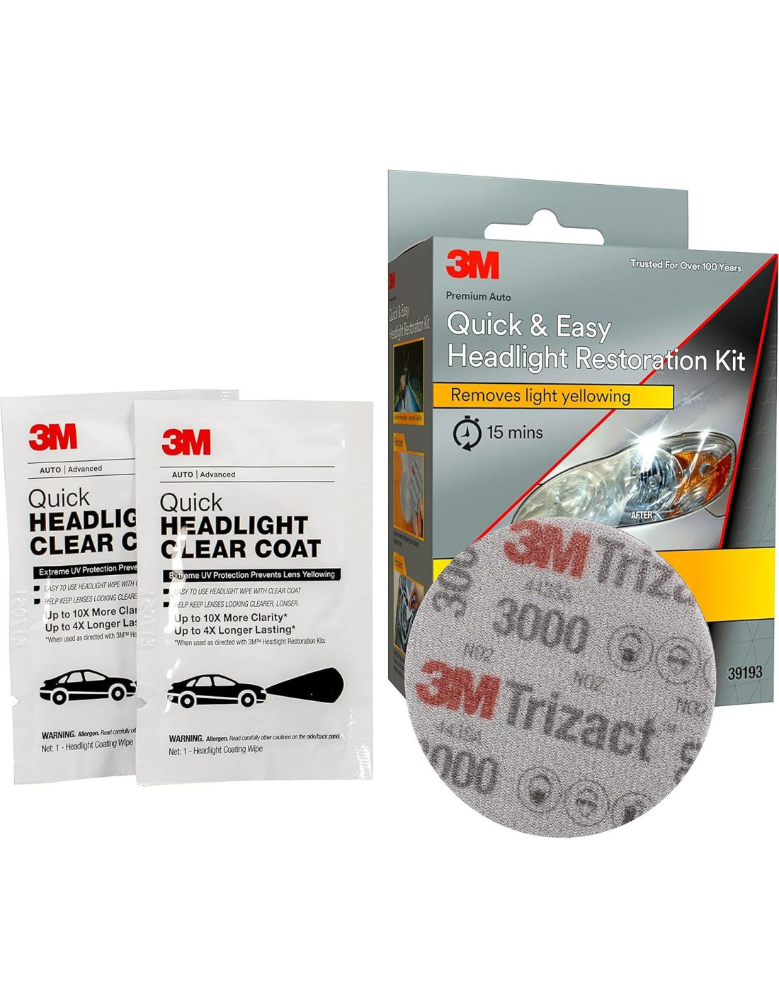 - EL KIT INCLUYE: Disco de Refinado 3M Trizact de 3000 grano (2) Toallitas de Clear Coat para Faros Rápido 3M