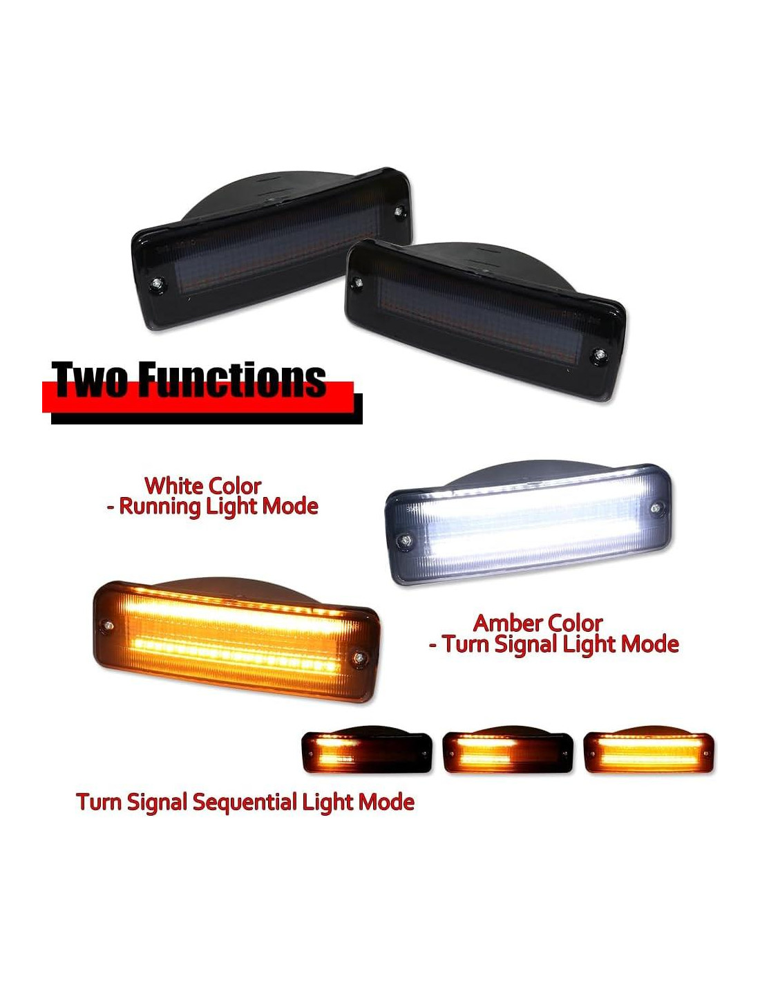 - El paquete incluye un par (lado del conductor y del pasajero) de luz de giro del parachoques delantero con lente ahumada, dando a tu coche un estilo premium único
