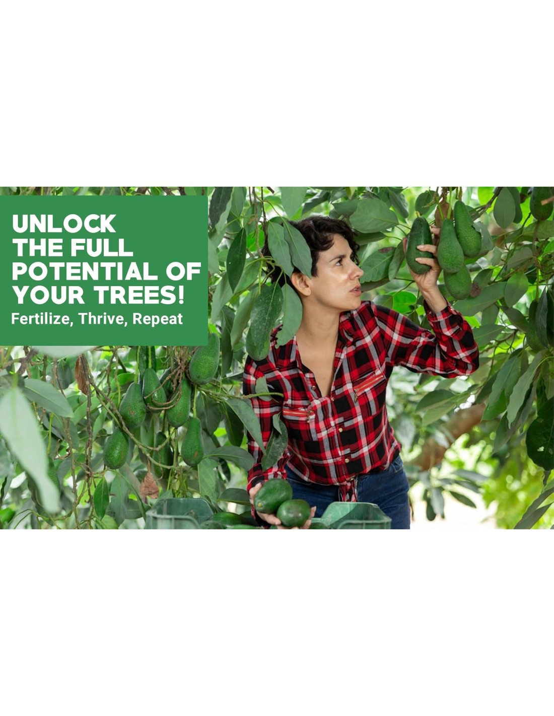 NUTRICIÓN TODO EL AÑO: Nuestros gránulos especialmente recubiertos están diseñados para derretirse con cada riego, liberando gradualmente nutrientes vitales. Esto asegura un suministro constante y continuo de nutrición, esencial para que tus árboles recuperen fuerza después de la cosecha y mantengan una fructificación excepcional.