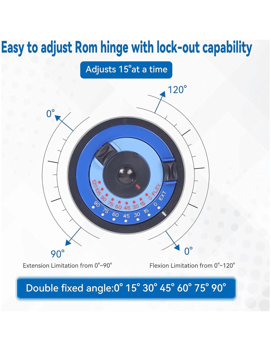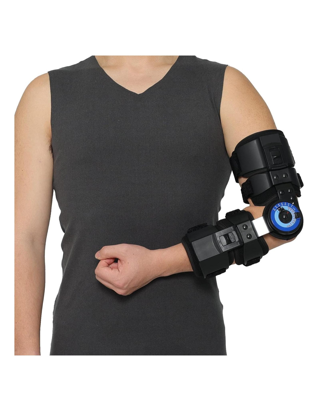 - Fracturas estables o fijadas internamente del húmero distal o radio o cúbito proximal & Inmovilización del codo en incrementos de 10~15; Limitar ROM mediante bisagras de ajuste simple