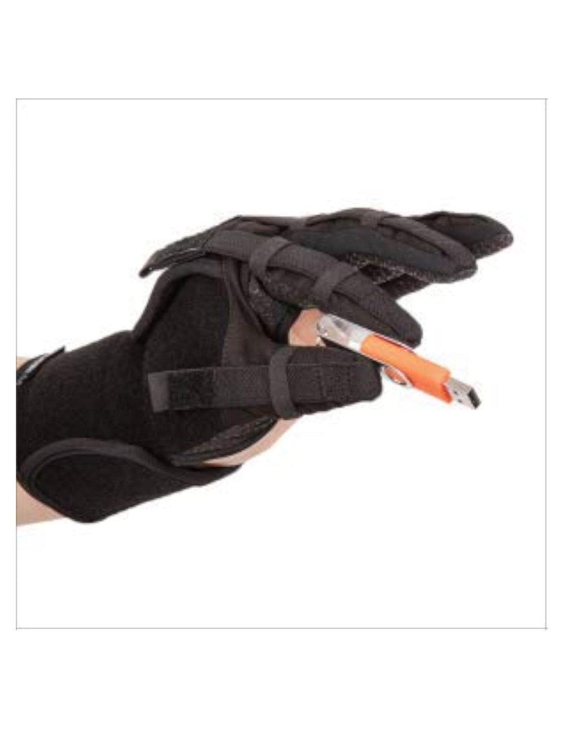 - CORREA DE EXTENSIÓN DE MUÑECA - Asegura la muñeca en una posición funcional. Las correas de asistencia de extensión clínicamente probadas están ubicadas en las puntas de los dedos para todos los dígitos y ayudan a extender los dedos y el pulgar después de agarrar.