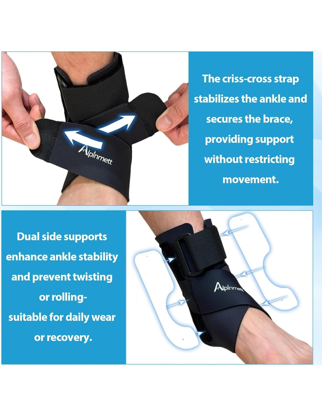 - Soporte de Doble Cara para Protección Estabilizada: La férula de soporte para tobillo Alpinmett cuenta con paneles de soporte de doble cara para mayor estabilidad y reducción del movimiento lateral, ayudando a prevenir esguinces y reinjuries. Alivia la incomodidad de condiciones como la fascitis plantar, tendinitis y lesiones leves en el tobillo. Ideal para deportes y uso diario, el estabilizador de tobillo mantiene el pie en una posición neutral para un soporte y recuperación óptimos.