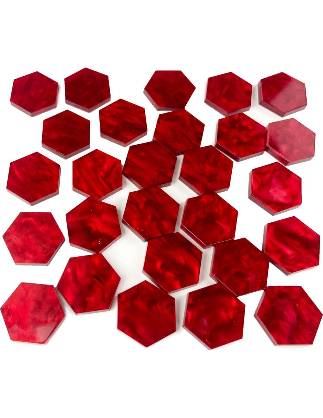 Fichas en forma de hexágono en blanco cortadas con láser de nuestros acrílicos perlados extra elegantes. Perfectas para todos los juegos de mesa, estas coloridas fichas pueden representar cualquier elemento del juego: recursos, dinero, meeples. Color Acrílico: Nebula Series - capas de colores en remolino y destellos. Laguna: Púrpura y Azul. Polvo de Estrellas: Oro y Violeta. Verde: Tonos de Verde. Sinfonía Series - colores audaces y brillantes. Rojo. Azul. Violeta. C4LABS ESTÁ DEDICADO A PROPORCIONAR LOS MEJORES ESTUCHES Y SERVICIO AL CLIENTE EN LA INDUSTRIA.