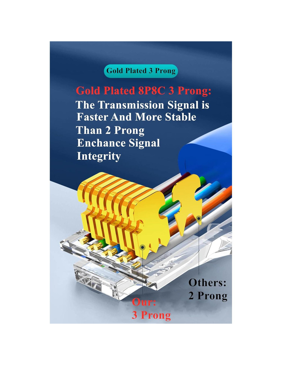 Conector RJ45 Passthrough Cat6/6A de Dos Capas de Calidad Premium. 1. Diseño: Conectores Passthrough Blindados - Más Fácil Identificar el Orden de Cableado; 2. Diámetro Exterior Máximo del Cable Aislado: 1.2mm - Soporta cable de 23AWG. 3. Conector de 3 Patas 8p8c Baquelita: La Señal de Transmisión es Más Rápida y Más Estable que la de 2 Patas. Mejora la Integridad de la Señal. 4. Ampliamente Usado: Adecuado para casi cualquier Crimpadora de Ethernet Passthrough, Fácil de Crimpar. 5. Blindaje y anti-interferencia: Enclosure Blindado de Metal, Protege el Núcleo Interno de la Interferencia de Ondas Electromagnéticas Externas, Hace que la Transmisión de Señal sea más Estable. 6. Paquete Incluido: 100PCS Conectores Passthrough Blindados de Calidad Premium.
