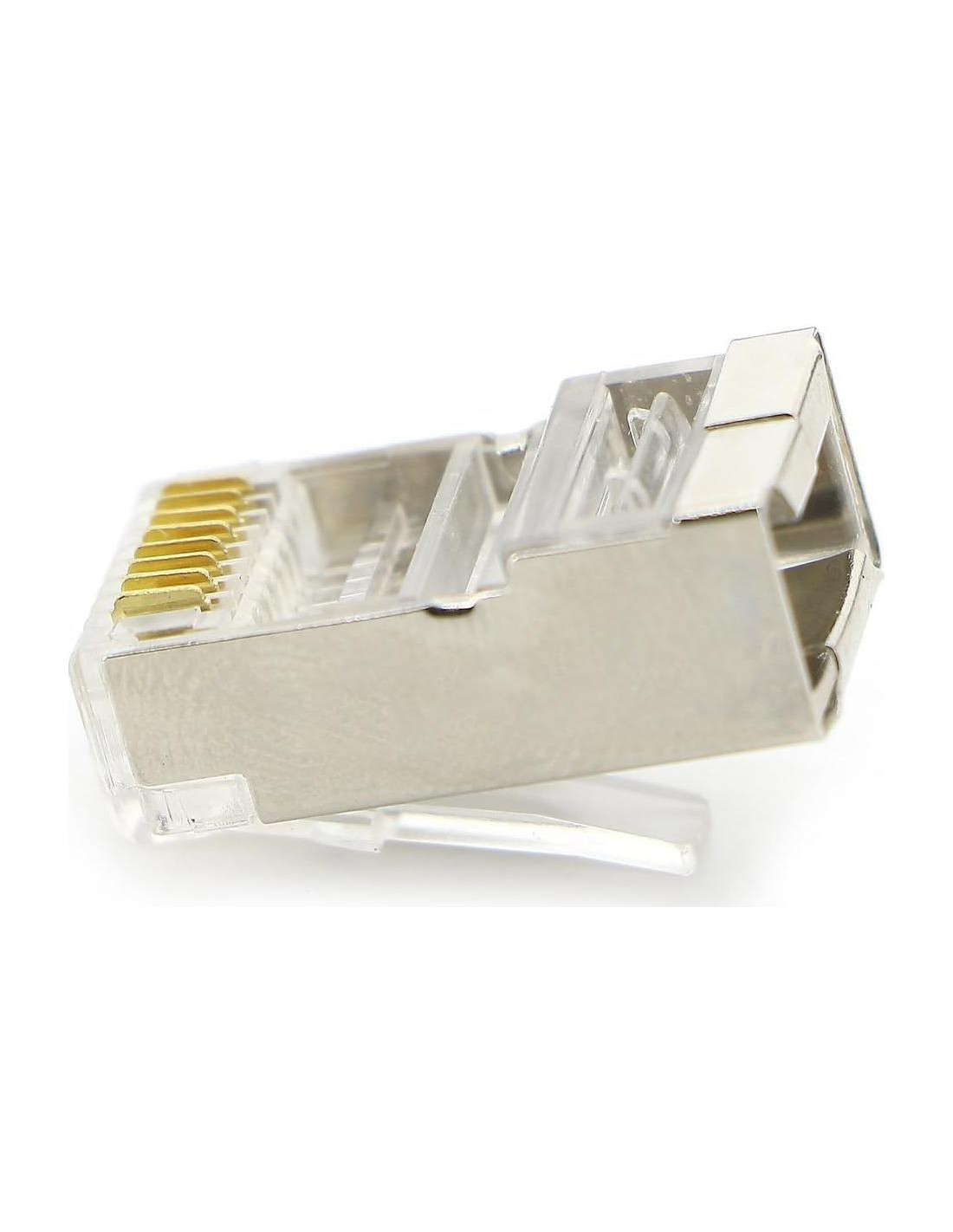 Conector de parcheo de red LAN RJ45 8P8C Cat5E blindado (bolsa de 100 pcs), conector UTP crimpado estándar CAT5, conector de cable de red RJ45 Cat6 blindado con 8 contactos (8P 8C) para 8 conexiones de cable. Adecuado para CAT 5 y CAT 5e. Compatible con enchufes RJ45 estándar. Fabricado con policarbonato de alta calidad. Pureza del cable de cobre superior al 99.99%.