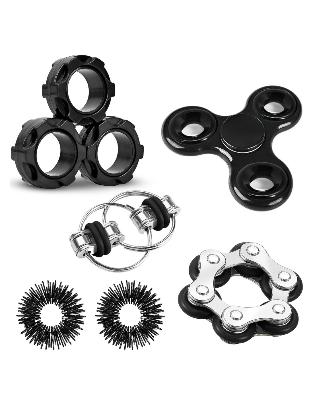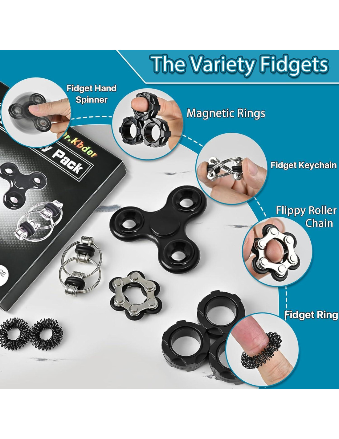 - [Juego de Juguetes Antiestrés para Adultos] El paquete de juguetes antiestrés Dr.Kbder incluye un spinner antiestrés, 3 anillos magnéticos, una cadena de bicicleta rodante, un juguete antiestrés de cadena giratoria y 2 anillos antiestrés. Varios tipos de juguetes antiestrés para ADHD te ayudan a aliviar el estrés y la ansiedad durante el trabajo, ayudan a tus hijos a mantenerse ocupados y concentrados durante el juego. Evita morderse las uñas, crujir los nudillos, mover las piernas y otros hábitos de inquietud con el uso de este conjunto de gadgets.