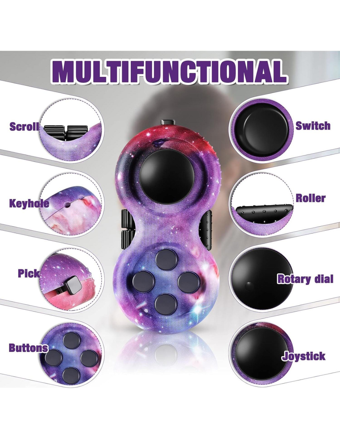 - Multifuncional: 4 botones clicables (2 con sonido y 2 silenciosos), 1 joystick de juego, 1 rodillo de masaje para dedos, 2 engranajes, 1 deslizador de resorte, 1 dial giratorio, 1 interruptor y 1 agarre convexo