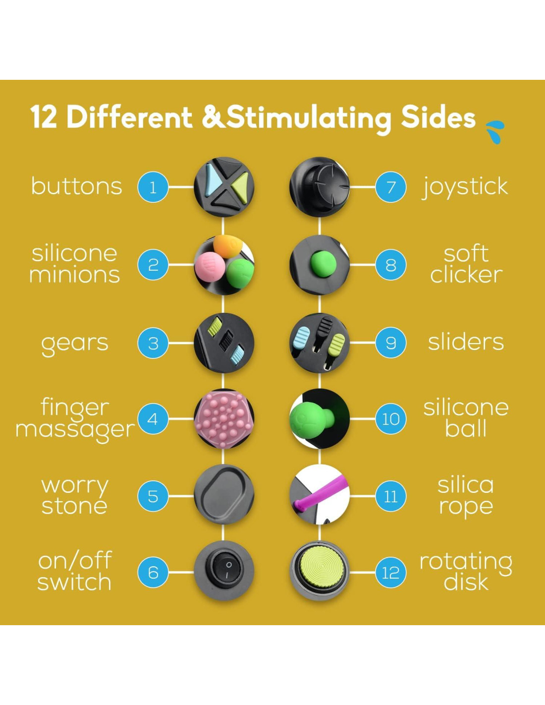 - AUMENTA TU CONCENTRACIÓN MENTAL: Ya sea que estés en la escuela o en el trabajo, nuestro juguete cubo fidget mejora el rendimiento cognitivo. Este dado para OCD mantiene tus dedos ocupados y afina tu concentración a través de diferentes botones de fidget audibles y silenciosos, perillas y interruptores.