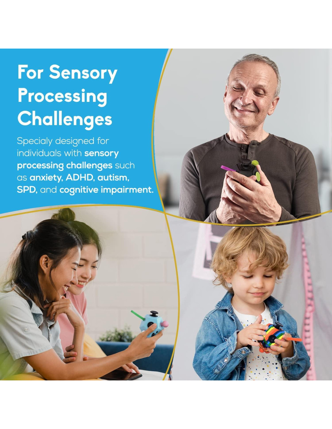 - DISEÑADO PARA DESAFÍOS DE PROCESAMIENTO SENSORIAL: Diseñamos nuestros juguetes de ansiedad para personas con sensibilidad sensorial. Nuestros juguetes cubo fidget ayudan a los estudiantes a concentrarse más y reducir la ansiedad para personas con TDAH y aquellos que desean dejar de fumar o morderse las uñas.
