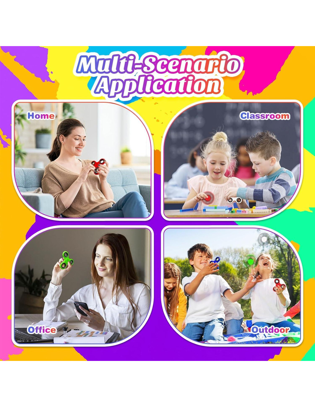 - FÁCIL DE USAR: Simplemente sostiene el spinner entre dos dedos (uno a cada lado del centro) y dale un giro con la otra mano. Con práctica, ¡incluso puedes dominar giros con una mano! Para un giro suave y estable, presiona ligeramente en el centro mientras giras. Una vez que sueltes, el juguete fidget seguirá girando sin esfuerzo. Una forma simple y satisfactoria de mantenerse enfocado o aliviar el estrés en cualquier momento y lugar.
